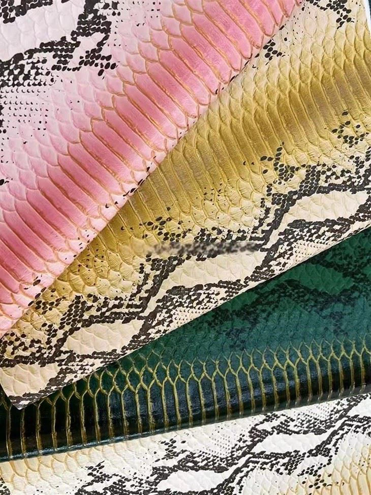 - Večbarvna zasnova usnja Python daje živahen in privlačen videz, zaradi katerega bodo vaši projekti zagotovo izstopali. Sijajni zaključek doda pridih prefinjenosti in elegance, zaradi česar so vaši postavki naredijo drage in vrhunske. Vzorec eksotične kože kače še poveča celotno estetiko, kar daje vašim kreacijam edinstven in eksotičen vonj.