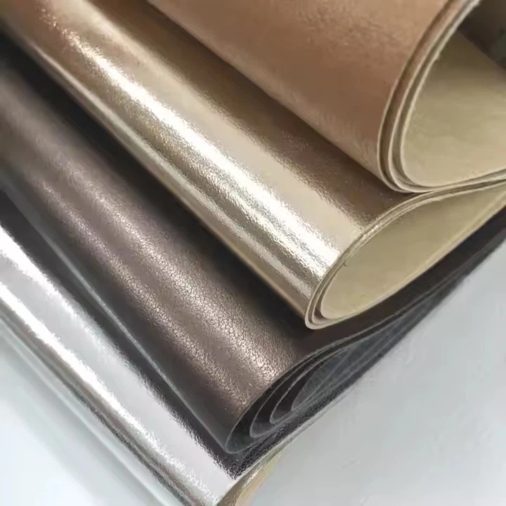 - Metallic Finish PU Umetne usnjene tkanine so postale priljubljena izbira za ženske čevlje, še posebej copat. Eleganten in sijoč videz kovinskega zaključka PU doda kanček glamurja in prefinjenosti vsaki obutvi. Te tkanine niso samo elegantne, ampak tudi trpežne in udobne, zato so idealne za vsakodnevno obrabo.