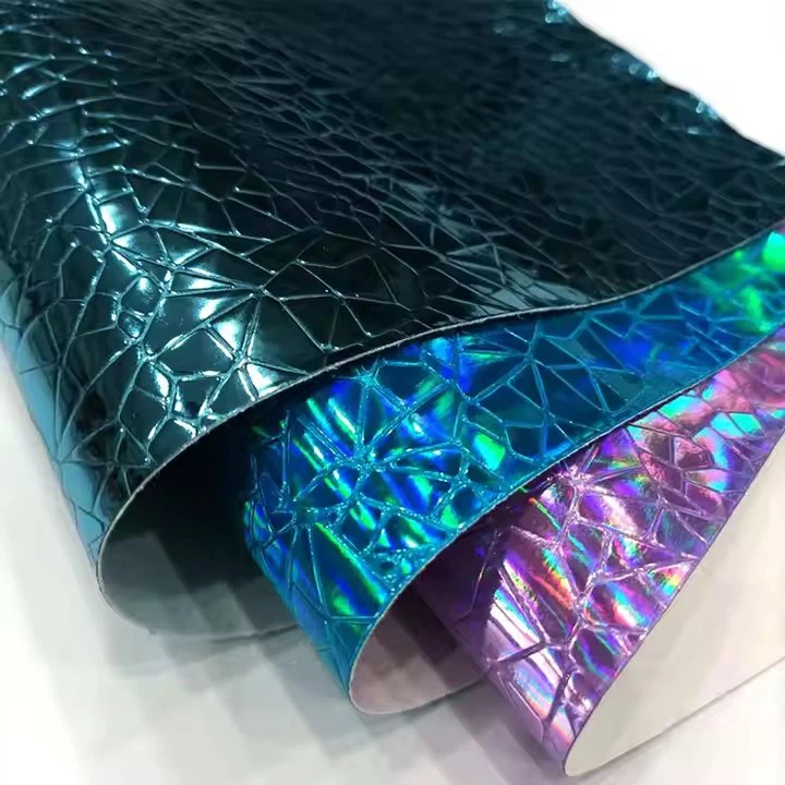 - 0. 7 mm trdna barva Pu usnjena kovinska ogledala učinek faux usnje geometrijsko vzorčno umetno usnje je osupljiv material, ki izžareva razkošje in slog. To edinstveno usnje združuje trajnost PU usnja z presenetljivim kovinskim zrcalnim učinkom, kar ustvarja vizualno vabljivo zasnovo. Geometrijski vzorec, vtisnjen na usnje, doda globino in teksturo, kar še poveča njen eleganten videz.
